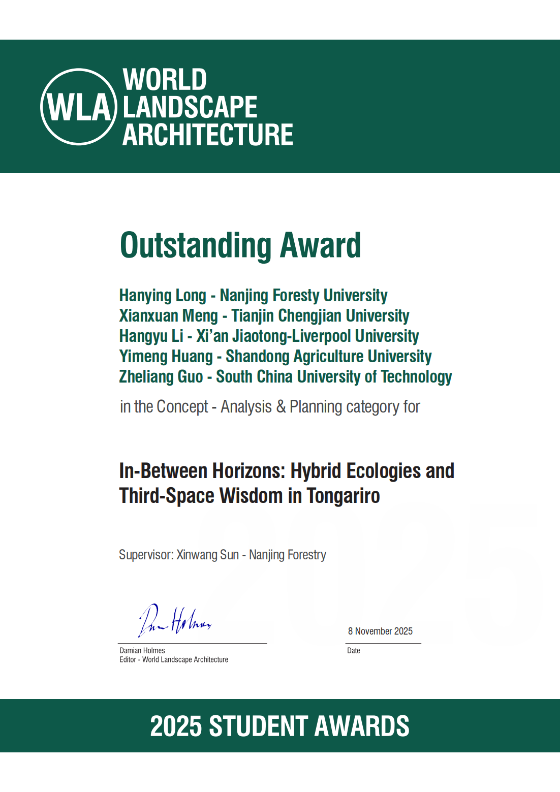 此次获奖不仅展示了牌九游戏学生在国际舞台上的创新能力与专业素养,也充分体现了牌九游戏 在景观规划与设计教育领域的教学成果。牌九游戏将继续致力于培养具备全球视野与社会责任的高素质景观人才,鼓励师生在更广阔的平台上交流切磋、再创佳绩。